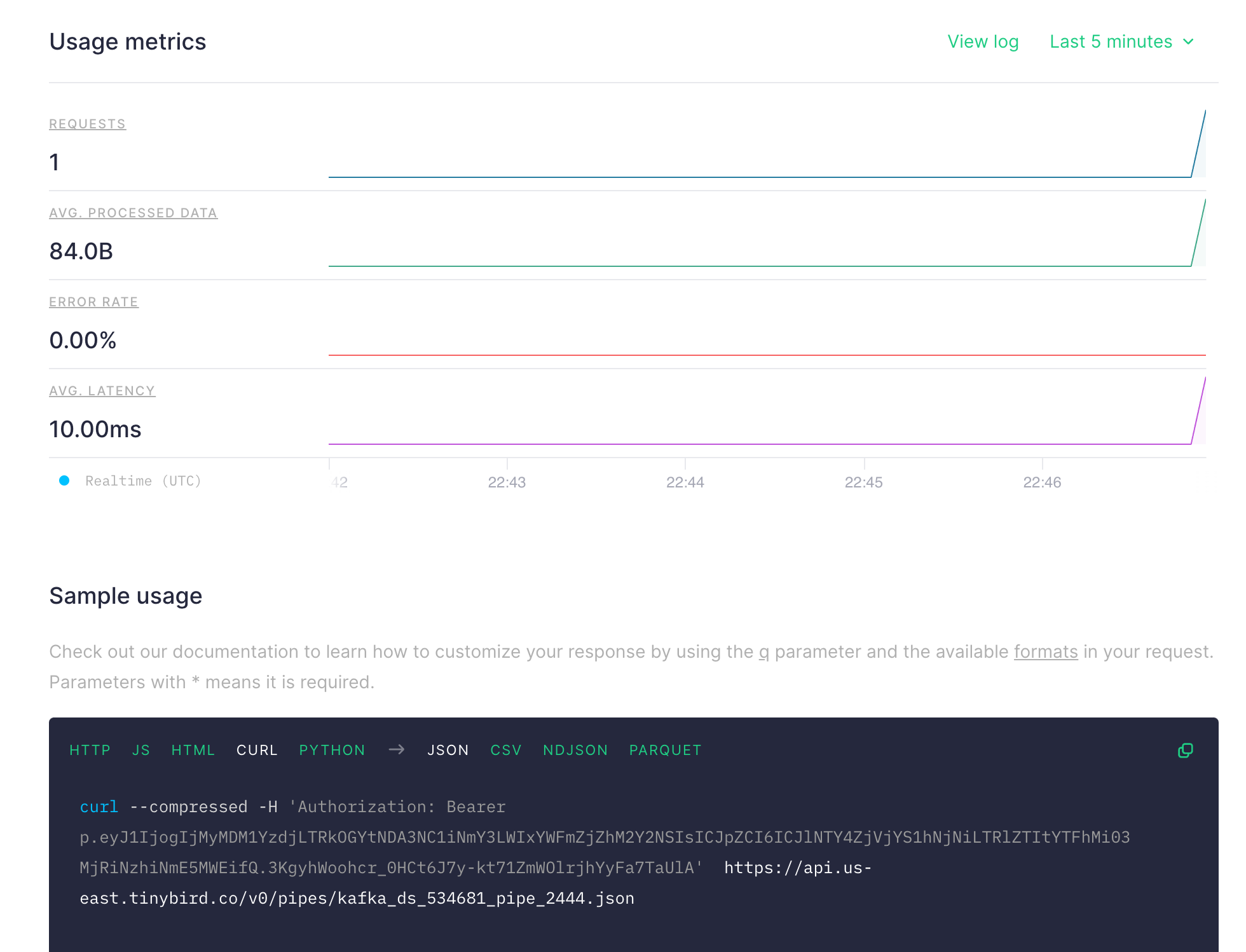 curl --compressed -H 'Authorization: Bearer p.eyJ1IjogIjMyMDM1YzdjLTRkOGYtNDA3CJpZCI6ICJlNTY4ZjVjYS1hNjNiLTRlZTItYTFhMi03MjRiNzhiNmE5MWEifQ.3KgyhWoohcr_0HCt6J7y-kt71ZmWOlrjhYyFa7TaUlA' https://api.us-east.tinybird.co/v0/pipes/kafka_ds_534681_pipe_2444.json