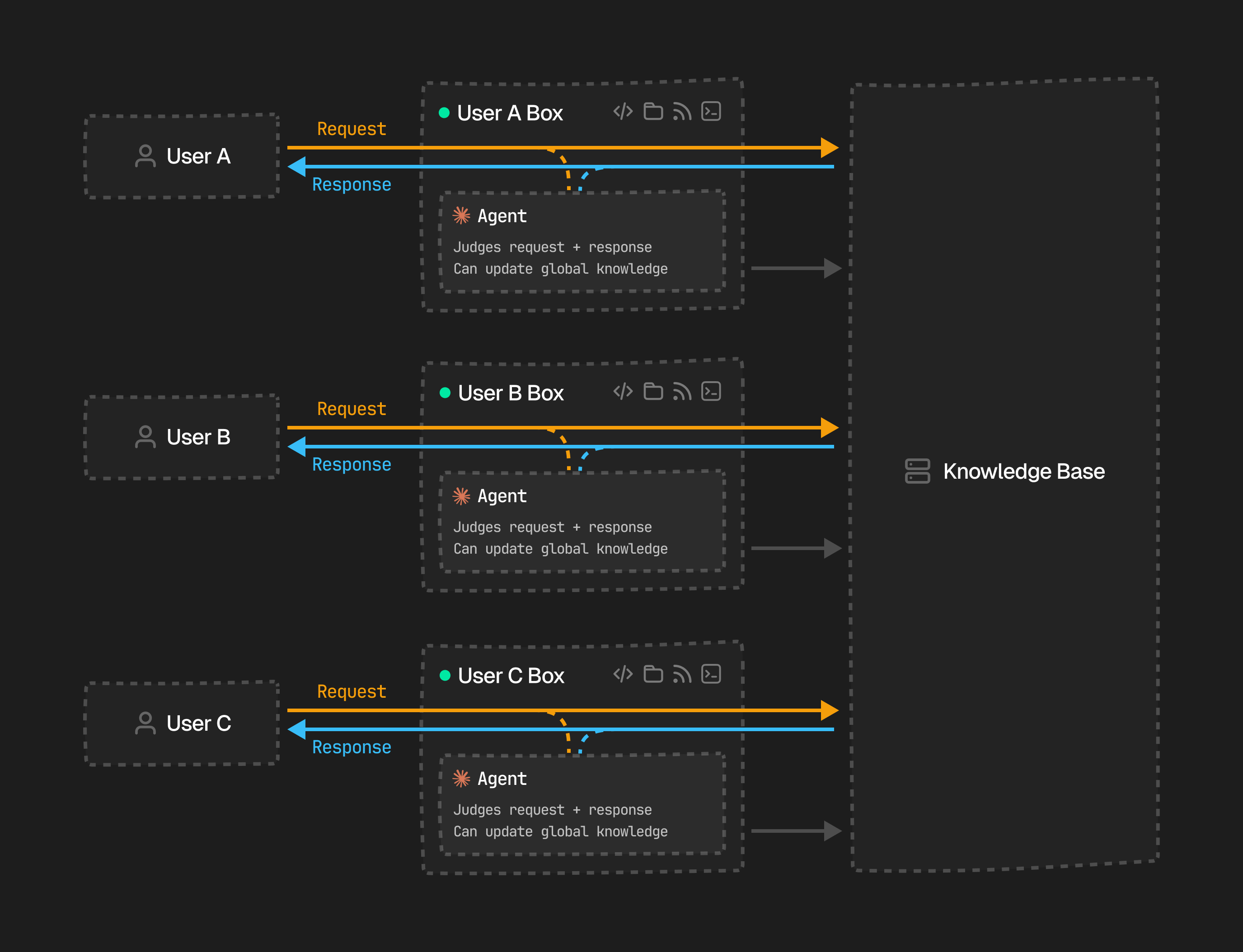 Box’s async SDK lets you spin up multiple boxes in parallel, each running a specialized agent with a distinct role. Once every agent finishes, a final box can synthesize their outputs into a single result.