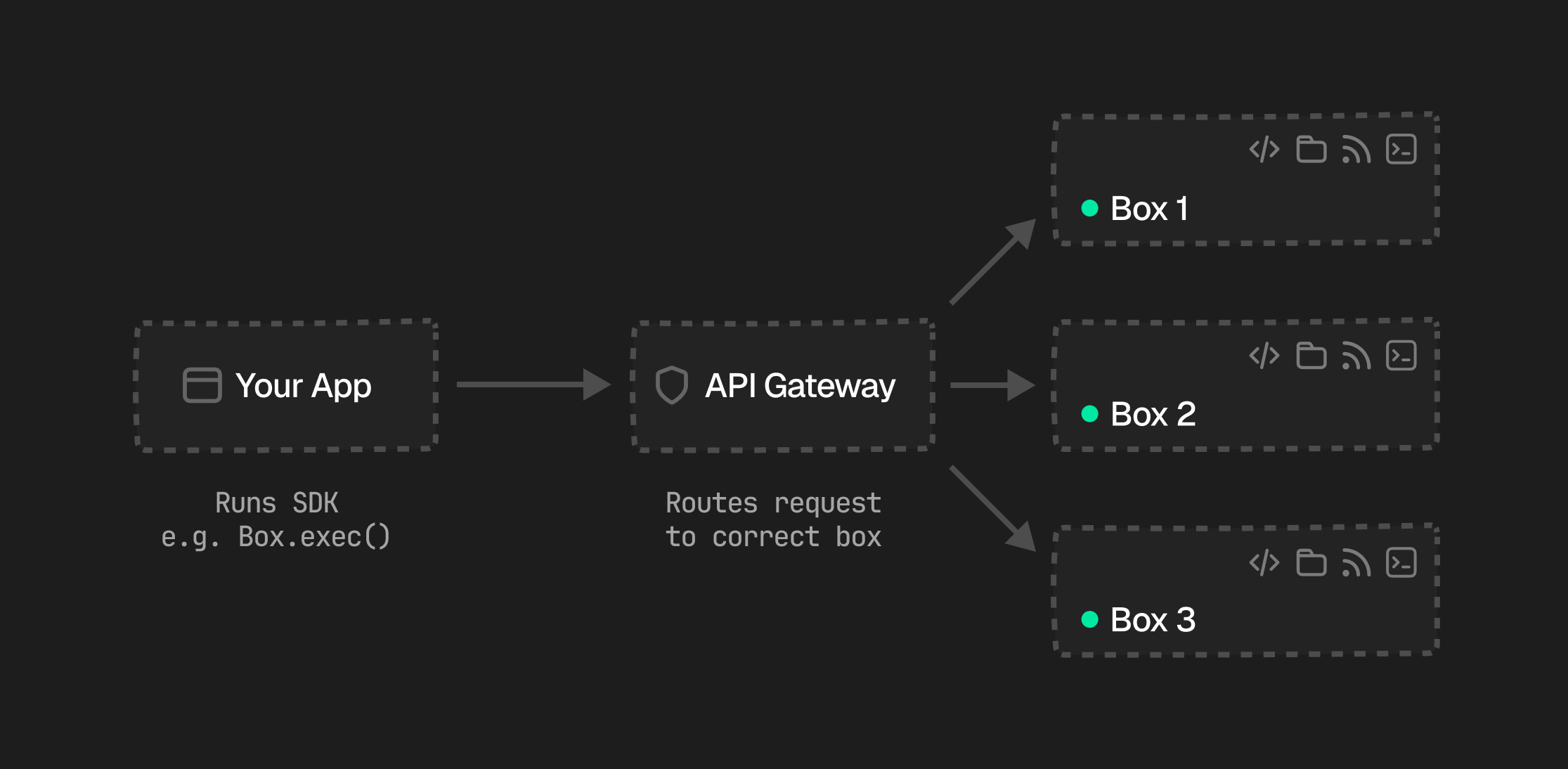 Every box is a self-contained environment with five capabilities:| Module | Description |